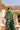- Design: Bold black, white, and green geometric print with a long, tailored fit